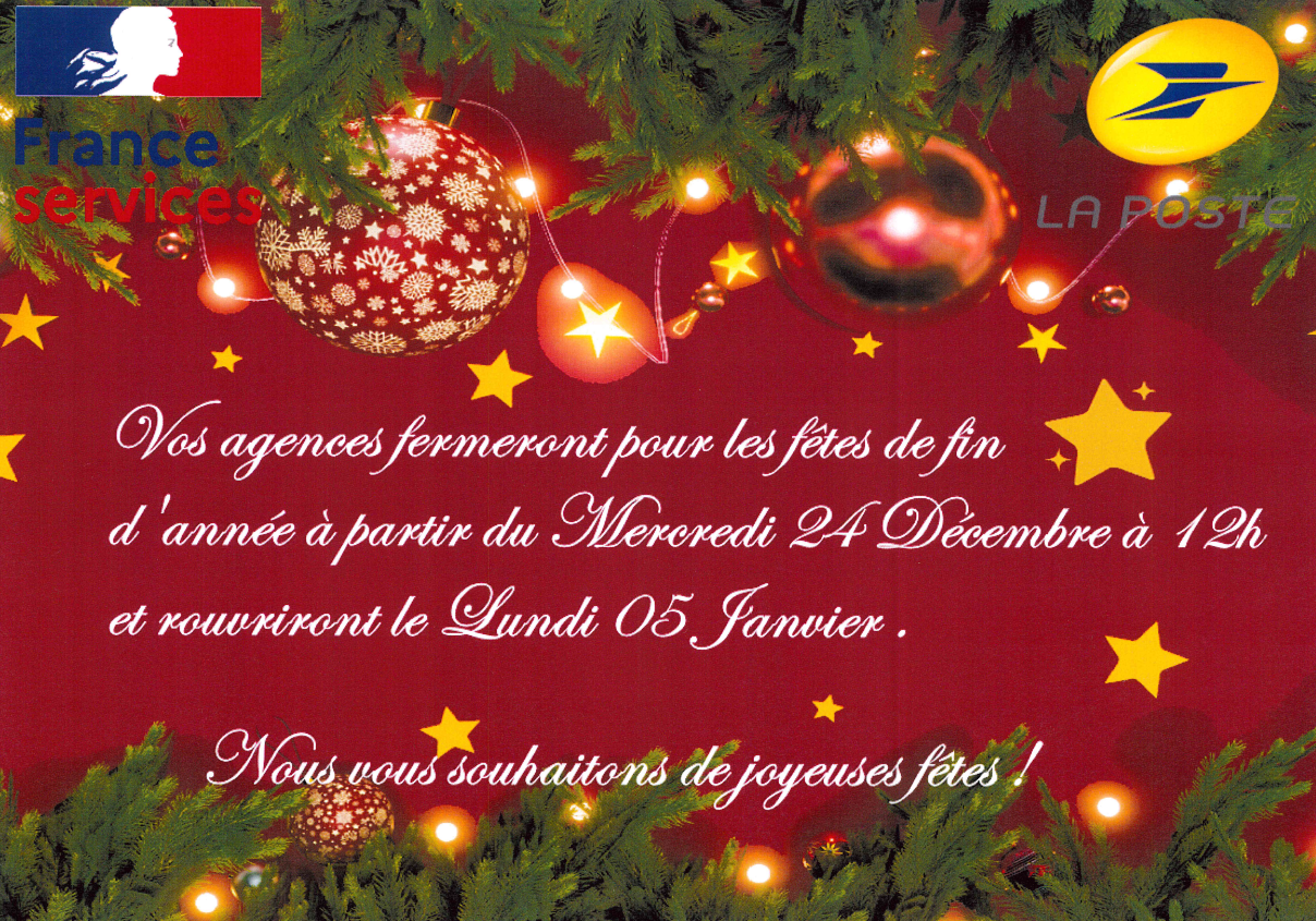 Fermeture des Agences Postale et France Services - Fêtes de fin d'année